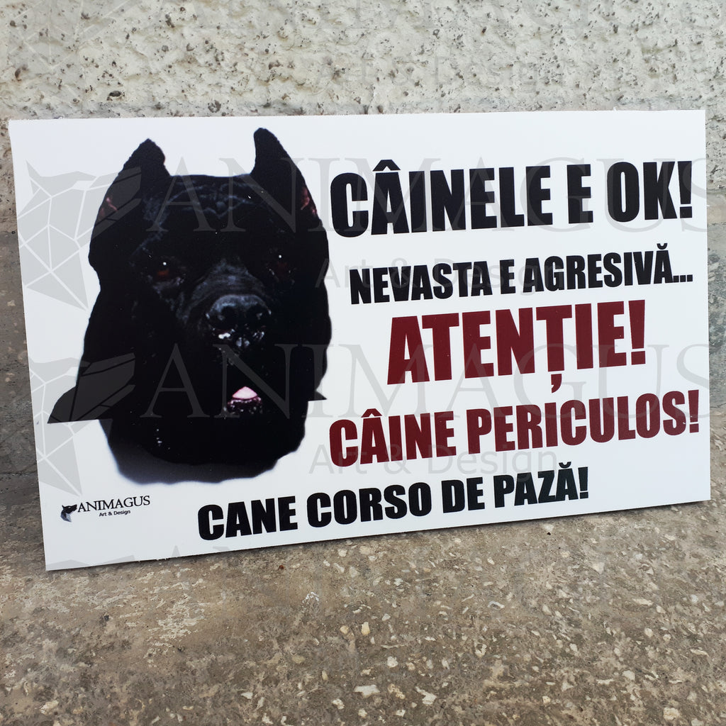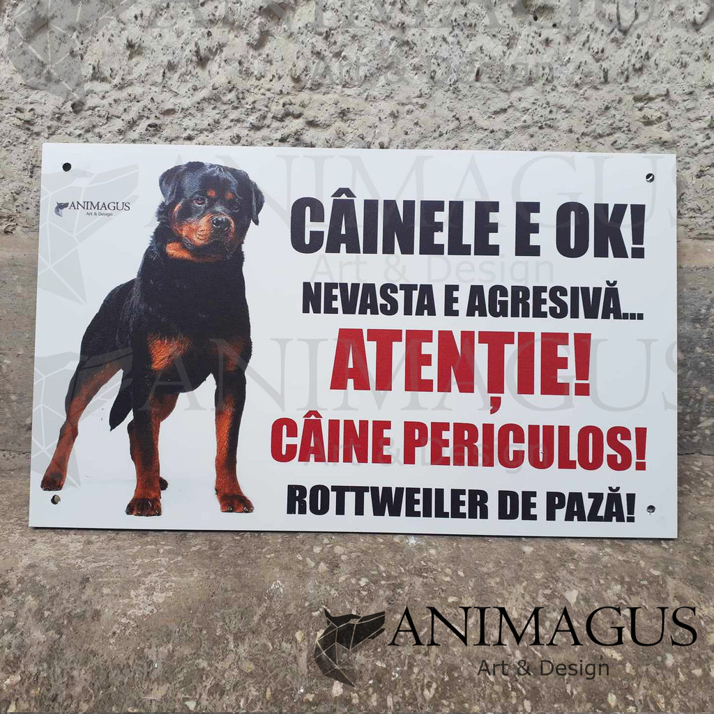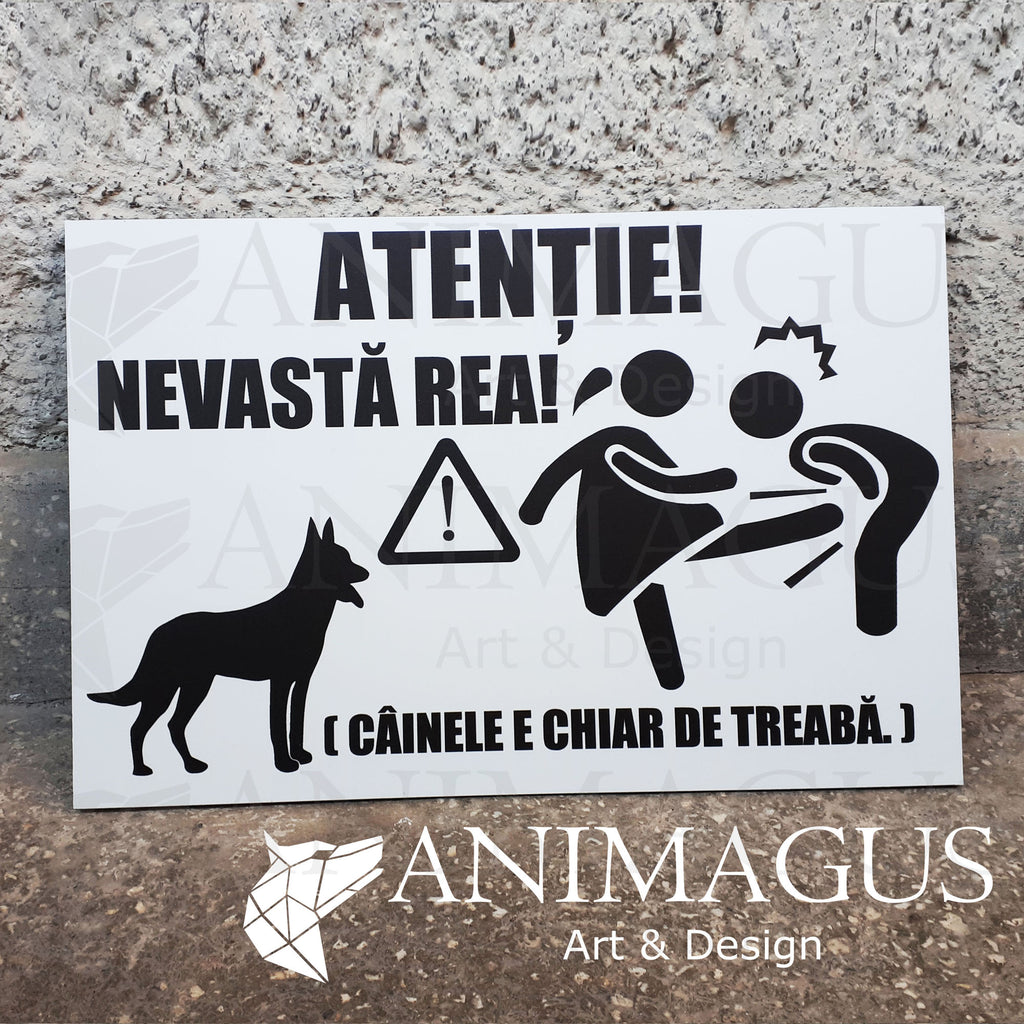 Placa de Avertizare Caine Periculos - in conformitate cu prevederile legale, avand urmatoarele caracteristici obligatorii:
